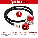 USER FRIENDLY AND TOP QUALITY CONNECTION – this high-pressure regulator and hose is adjustable from 0-20 psi with its red knob and has a top notch output for a wide variety of propane appliances from burners and heaters to smokers and fryers