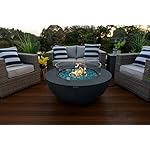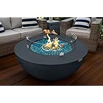 AKOYA Outdoor Essentials 42″ Outdoor Propane Gas Fire Pit Table Bowl in Gray (Caribbean Blue)