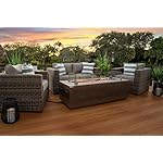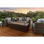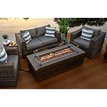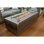 AKOYA Outdoor Essentials 60″ Rectangular Modern Concrete Fire Pit Table w/ Glass Guard and Crystals in Brown (60″ Brown, Clear Crystals)