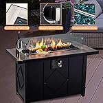 AVAWING Propane Fire Pit Table, 42 inch 50,000 BTU Rectangular Gas Fire Pit Table w/Glass Wind Guard, Table Lid, Fire…