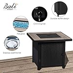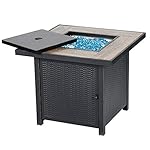 BALI OUTDOORS Propane Gas Fire Pit Table, 30 inch 50,000 BTU Square Gas Firepits with Fire Glass for Outside