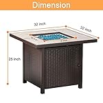 BALI OUTDOORS Propane Gas Fire Pit Table 32 inch 50,000 BTU Square Gas Firepits for Outside, Brown