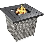 Best Choice Products 28in Gas Fire Pit Table, 50,000 BTU Outdoor Wicker Patio Propane Firepit w/Faux Wood Tabletop…
