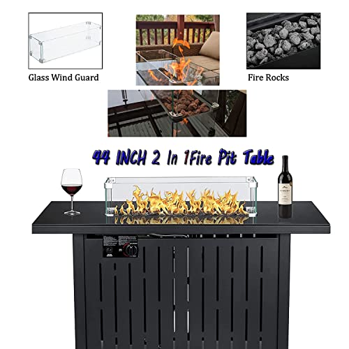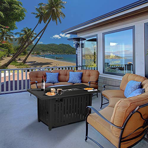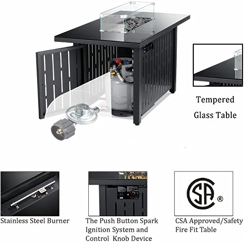 🔥【Spread the Glow】: Natural red lava pieces fill the burner bowl and help radiate the warmth more evenly as they are heated by the flames. No soot or ash to clean up and no smoke as with wood burning or charcoal fires. Clean burning propane stays lit with no stoking and is better for the environment. The Firepit table also comes with 2 bags blue fire glass for decoration and a waterproof cover to keep it clean and dry when not in use,wind guard keep the flames steady.