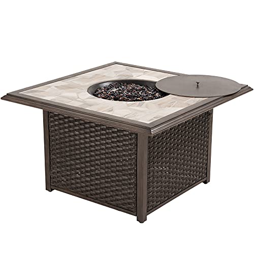 Enjoy the ambiance and warmth of the outdoor fire pits dancing flames in your backyard all year round. The fire pit with cover included with your liquid propane fire pit table allows you to keep your fire pit outdoors during all seasons, while keeping it protected from any harsh weather conditions. Simply remove the propane fire pit cover when ready to use on a cold summer night or to entertain guests in the winter. Admire the outdoor fireplaces bright flames reflecting off the lava rocks included with your patio propane heater while staying warm and cozy within the heating radius of your outdoor centerpiece. Sit back and relax with the patioflame table centered in the middle of your outdoor patio furniture perfect for your backyard, patio, deck, or poolside. Fire pit accessories for outside available for purchase separately. Please note the following: Most fire pits are available in both liquid propane and natural gas versions. The patio outdoor firepits come configured as ordered with the fuel type selected when purchased and cannot be converted. Please reach out to our friendly customer service team if assistance is needed while purchasing your backyard firepit. Outdoor fire pits are heavy items and shipped through freight which is expensive. We accept returns of all unopened firepits within 30 days of receipt for a full refund minus any shipping cost. If customer changes mind or refuse to accept the patio fire pit shipment, customer will be charged shipping fees both ways and a restocking fee may apply.