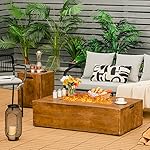 Perfect Entertainment Area: Adopting the rustic and classic wood finish, 48x27inch fire pit table provide large enough surface to set your snack and drink and keep them warm as the evening lingers on. this outdoor propane gas fire pit set will be the centerpiece in your backyard, patio and balcony to conduct a private and warm conversation and enjoy meals while sitting around the fire.