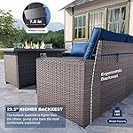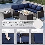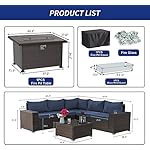 Kullavik 7 Pieces Outdoor Patio Furniture Set with 43″ 55000BTU Gas Propane Fire Pit Table PE Wicker Rattan Sectional Sofa Patio Conversation Sets,Dark Blue