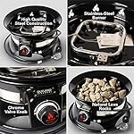 ✓ COMPACT AND EASY TO TRANSPORT: Travel size fire pit is lightweight and portable; easily set up in minutes with no tools required. Matchless auto-ignition feature ensures a fast and simple start-up; all weather fire bowl delivers a clean and smokeless flame with cozy warmth and beautiful evening ambiance. Measures L 19” x W 19” x H 11” with total output of 58,000 BTU/HR.