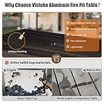 Vicluke 44 Inch Aluminum Propane Fire Pit Table w/ Faux Ledgestone, Hand-Painted Table Top, 50,000 BTU Fire Table w/ CSA…