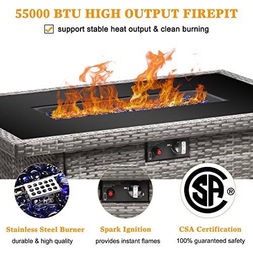 🔥【CSA Certification & Easy Ignition】Our propane fire pit table has CSA certification, it complies with all applicable U.S. standards to ensure compliance and safe use. Equipped with a 304 stainless steel H-burner rated at 50,000 BTU to support stable and clean burning, never suffering from smoke and ash. Push-button spark ignition system is more convenient and simple to control, enjoy the warm glow of classic rustic style.