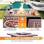 SAFE AND EASY TO USE – This gas fire pit table is ETL certified; The push-to-start ignition system is very safe and ensures that each ignition is successful; Equipped with a safety switch – when the propane inlet valve is closed, the system will consume the remaining gas in 29 seconds; The 50,000 BTU CSA – certified burner also increases the safety of the table