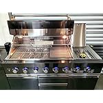 3 Piece Black Stainless Steel Outdoor BBQ Kitchen Grill Island with Refrigerator + Sink + Pizza Oven (LED Knobs on the Grill). *New Black Stainless Steel Upgrade. Works with propane or natural gas (If you plan to use Natural Gas please let us know. There is a conversion kit for $50 we have in stock). TONS OF UPGRADES INCLUDED WITH THIS MODEL: *** Free Upgrade w/ Marble Counter Tops! *** Free Canvas Rain Cover Included! *** Upgraded METAL knobs w/ Blue Light LED! *** Free Cast Iron Sear Pan + Stainless Grill Grates! *** Rotisserie Kit Included Free! *** Upgraded with Premium Sink Faucet from standard version! *** High Quality Black Stainless Steel Pizza Oven w/ Glass Viewing Window + Free Rain Cover Included! Thick heavy duty lockable castors included on all sections, makes moving it very easy. Latest model with black stainless steel + upgraded interior lighting + 8 exterior blue LED lights make it easy to see at night. New models now also use all metal knobs. Standard delivery is curbside delivery via Freight Courier, with liftgate delivery. Please read our Amazon storefront info and shipping policies, as it may not be possible for us to ship this item to your location.