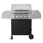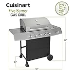 The Cuisinart 5-Burner Gas Grill is the perfect BBQ for any level of griller! The 5 independently controlled burners produce a total of 50,000 BTUs of cooking power spread evenly across the 460 square inch cast iron cooking surface. The grill is also equipped with an additional side burner that provides 12,000 BTUs and is great for stews, corn, clams and more. And if you’re looking for additional space, the warming rack above the cooking surface provides an additional 202 square inches. With a reliable and easy twist-to-start ignition your grill will start up time after time. And no grill is complete without side tables. The Cuisinart 5-Burner Gas Grill has two 18-inch x 13-inch stainless steel side tables that allow for extra room while prepping and grilling. Unlock your inner griller with the Cuisinart 5-Burner Gas Grill!