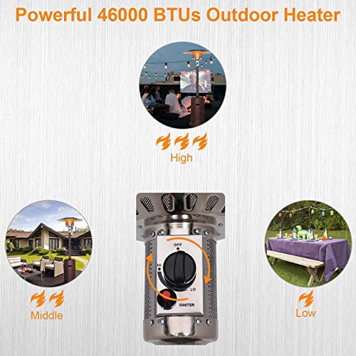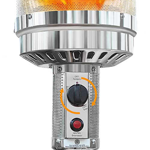SAFETY: Equipped on this pyramid outdoor patio heater is a built-in safety feature that automatically shuts the heater off if it senses it’s being tipped over a 45-degree angle. This feature provides peace of mind so that you can focus on your outdoor gathering. This pyramid patio heater is also ETL certified to meet rigorous North American safety standards.