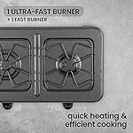 Propane Gas Powered: Our propane gas powered double burners will quickly heat up to your desired temperature; Made with one Ultra-Fast Burner and one Fast Burner; Regulator not included