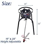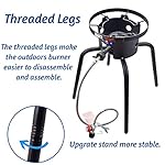 🔥Adjustable Height: This portable burner has four threaded legs with height options of 19″ and 28″. It can be placed on the ground, on a table, or on a stump. The easily threaded legs make the stove convenient to transport and store.