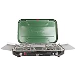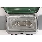 Portable propane stove fits two 12 inch pans or three 8 inch pans at once for variety of meals