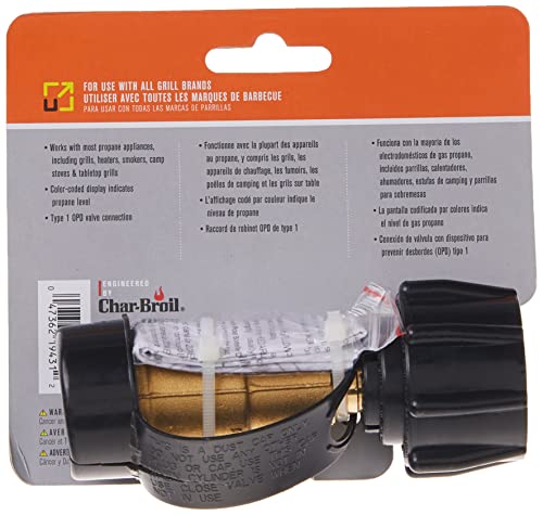 Monitors fuel level without removing the tank. Gauge display accounts for ambient temperature change. Color coded dial for allowing you to see at a glance when your propane level is low.