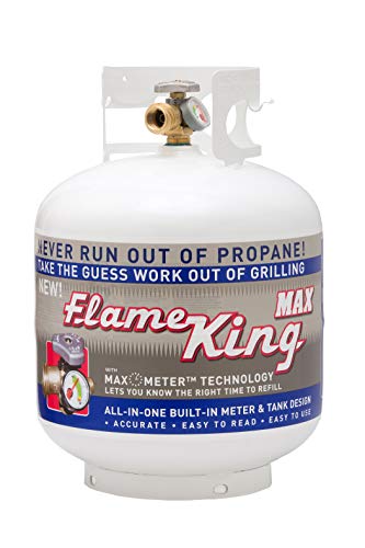 The Flame King 20lb propane cylinder comes with an overflow protection device valve & a built-in Gauge. Never again do you have to worry about running out of propane with the built-in gas meter Gauge that provides accurate gas level readings.