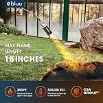 🔥【HIGH HEAT PERFORMANCE】Reaching up to 3,500° F, the MAX 500,000 BTU of heat burns weeds and kills roots fast! Flame size on the self igniting weed burner can be altered via the flow valve while the Turbo-Blast trigger allows you to turn the weed torch propane burner to maximum temperature in an instant.