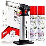Kitchen Torch With Butane included – Refillable Butane Torch With Safety Lock & Adjustable Flame + Fuel gauge – Culinary…