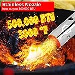 【ℂ𝕠𝕞𝕡𝕒𝕔𝕥 𝔸𝕟𝕕 ℙ𝕠𝕨𝕖𝕣𝕗𝕦𝕝】Propane weed torch can be connected to small-sized propane(converter needed) or MAPP gas cylinder tank (not included) to the end. However, this simple and compacted designed weed burner is able to give a heat output of 500,000 BTU.
