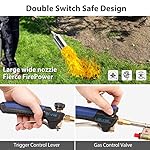 Advanced Ignition and Flame Control:The Weed Burner Torch comes with electronic igniter to help you start the flame quickly and safely;Gas valve and a turbo trigger allows you to adjust the flame with one hand. Equipped with an ergonomic handle to increase comfort during use